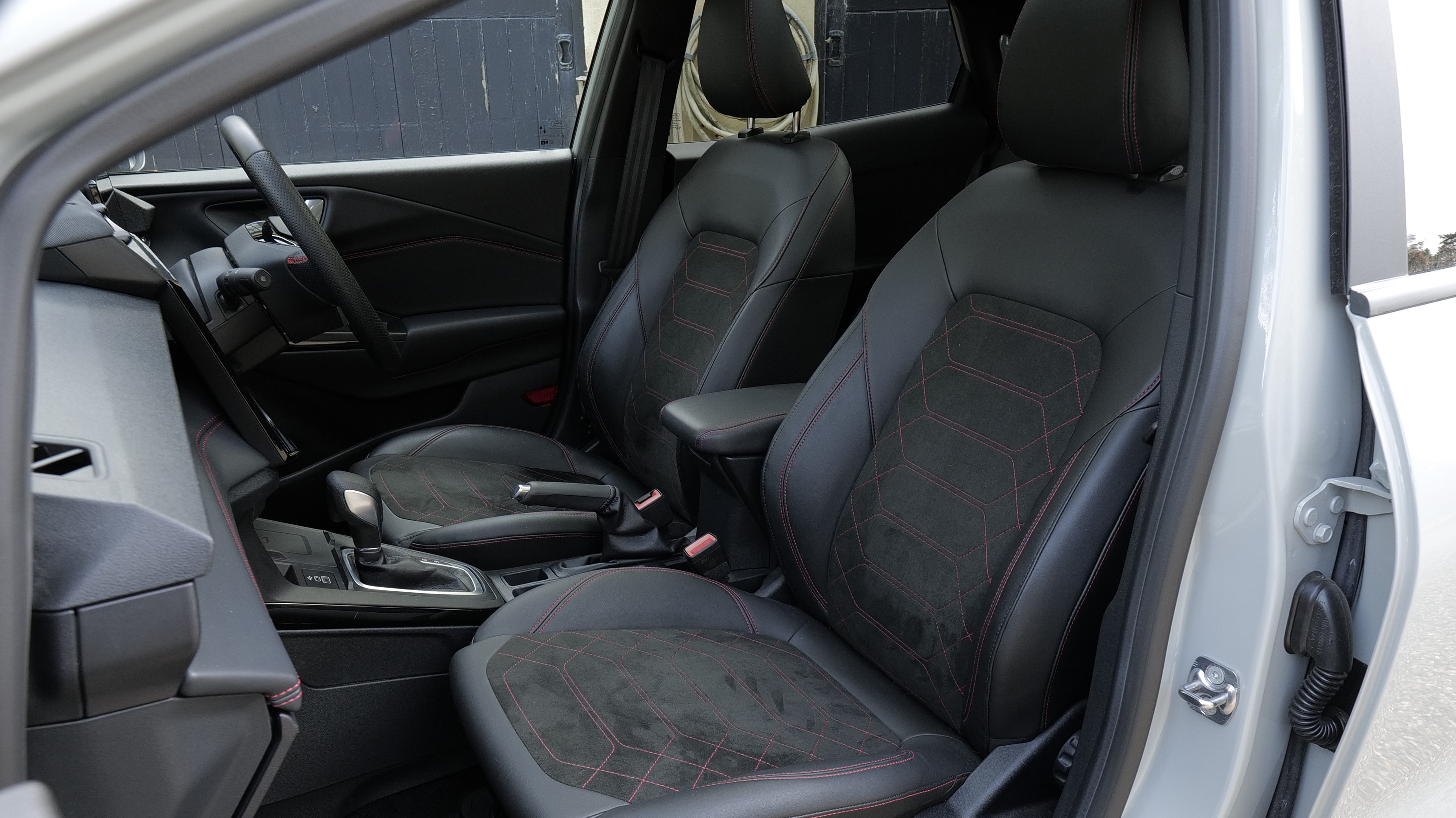 Synthetic leather upholstery adorns the seats, the armrest and the steering wheel, with different stitching colours depending on the trim level you've selected.