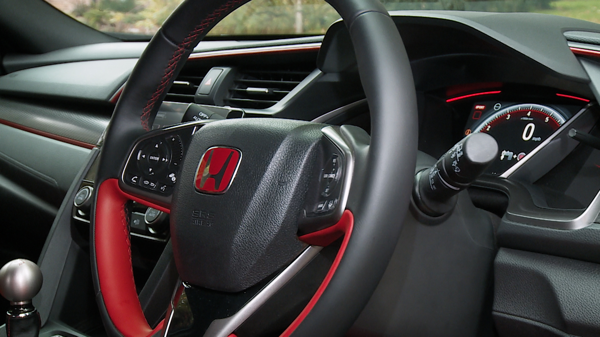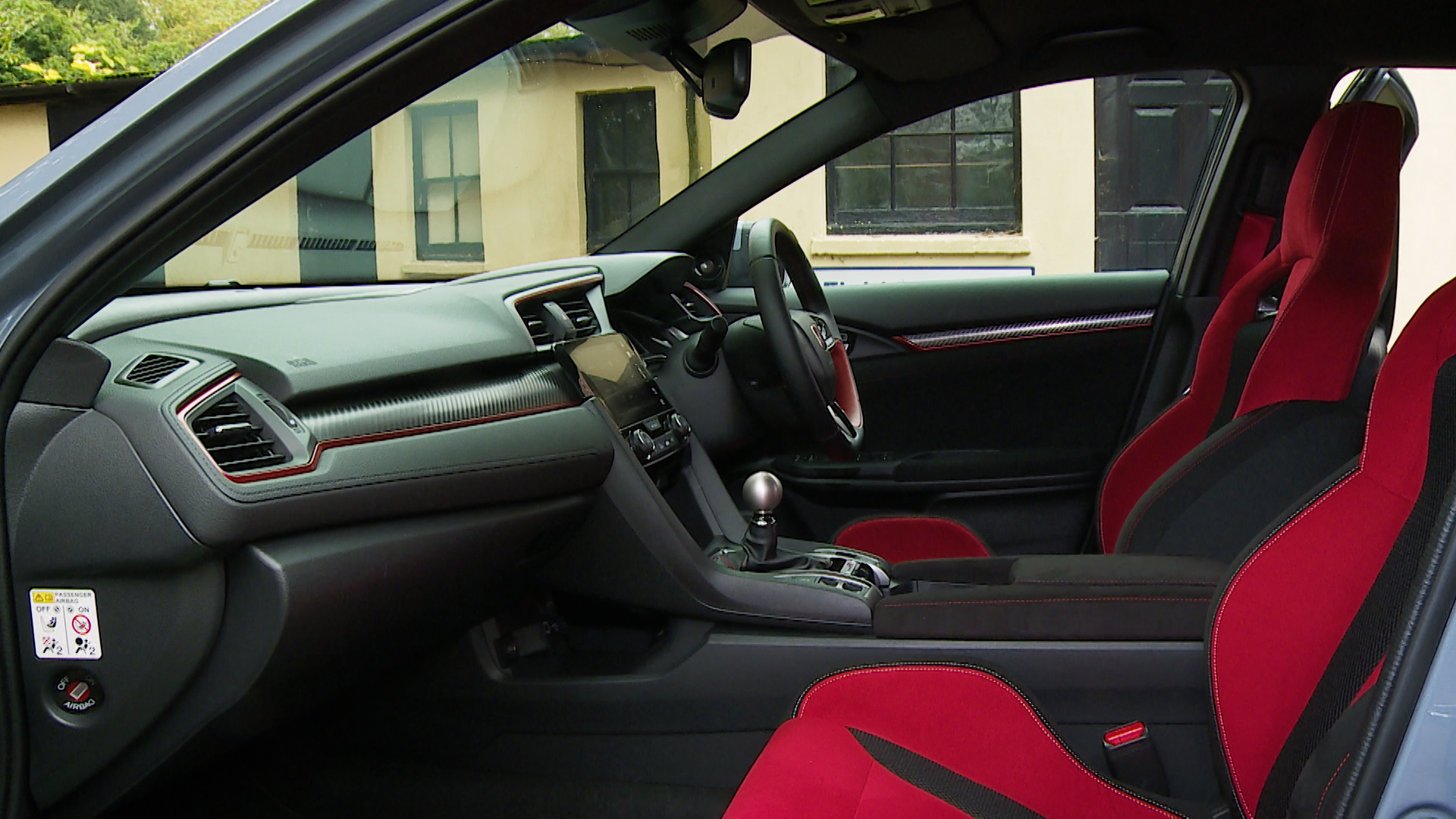 You get lovely suede-effect black fabric with red double-stitching and positioning that places you 22mm closer to the floor than was the case with the previous model. Typically for a Type R, the gear knob is fashioned from machined aluminium alloy, which looks nice but feels freezing in winter, while branding your palm with the gearshift chart in the heat of summer.