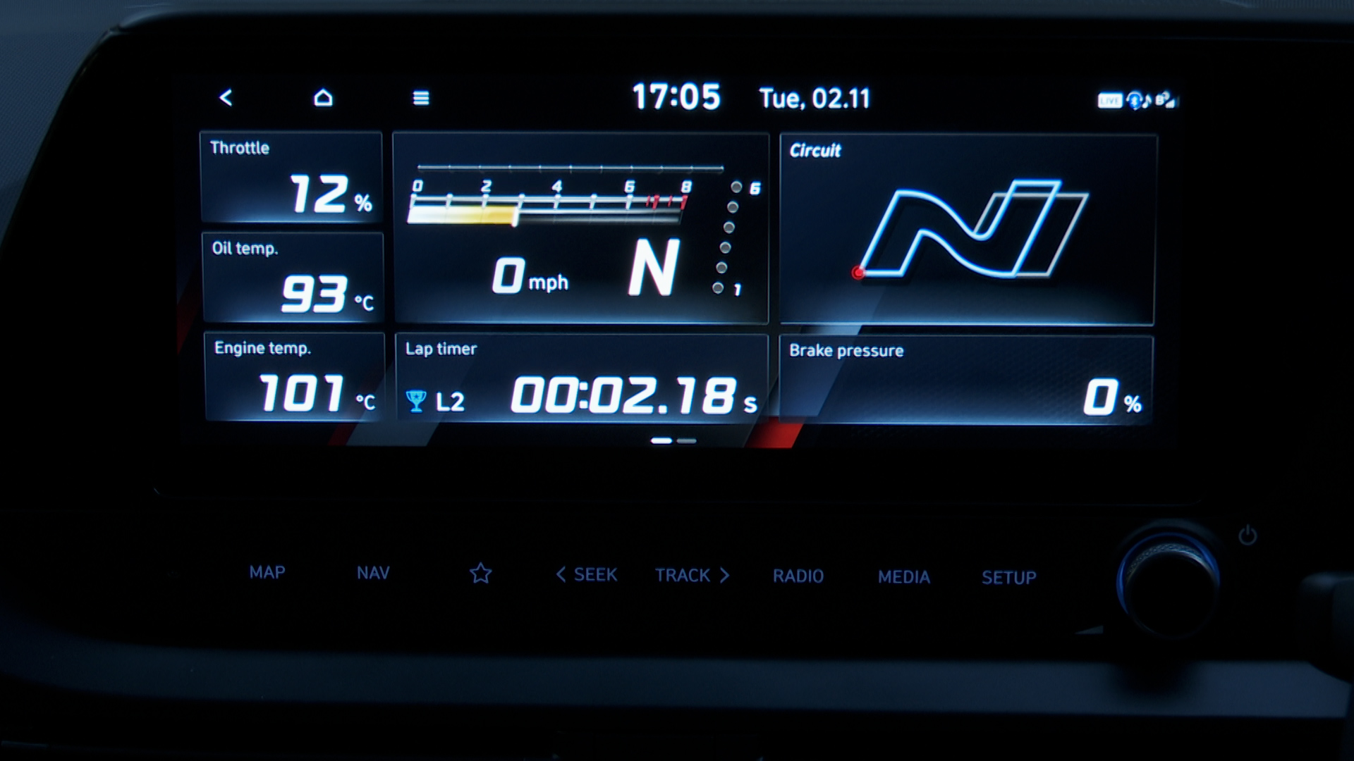 And the complementing Centre Console Display has an 'N mode' section with a home screen for serious drive info: or you can swipe across to Custom screens that allow you to tailor responses for engine, steering, rev matching, ESC and exhaust sound.