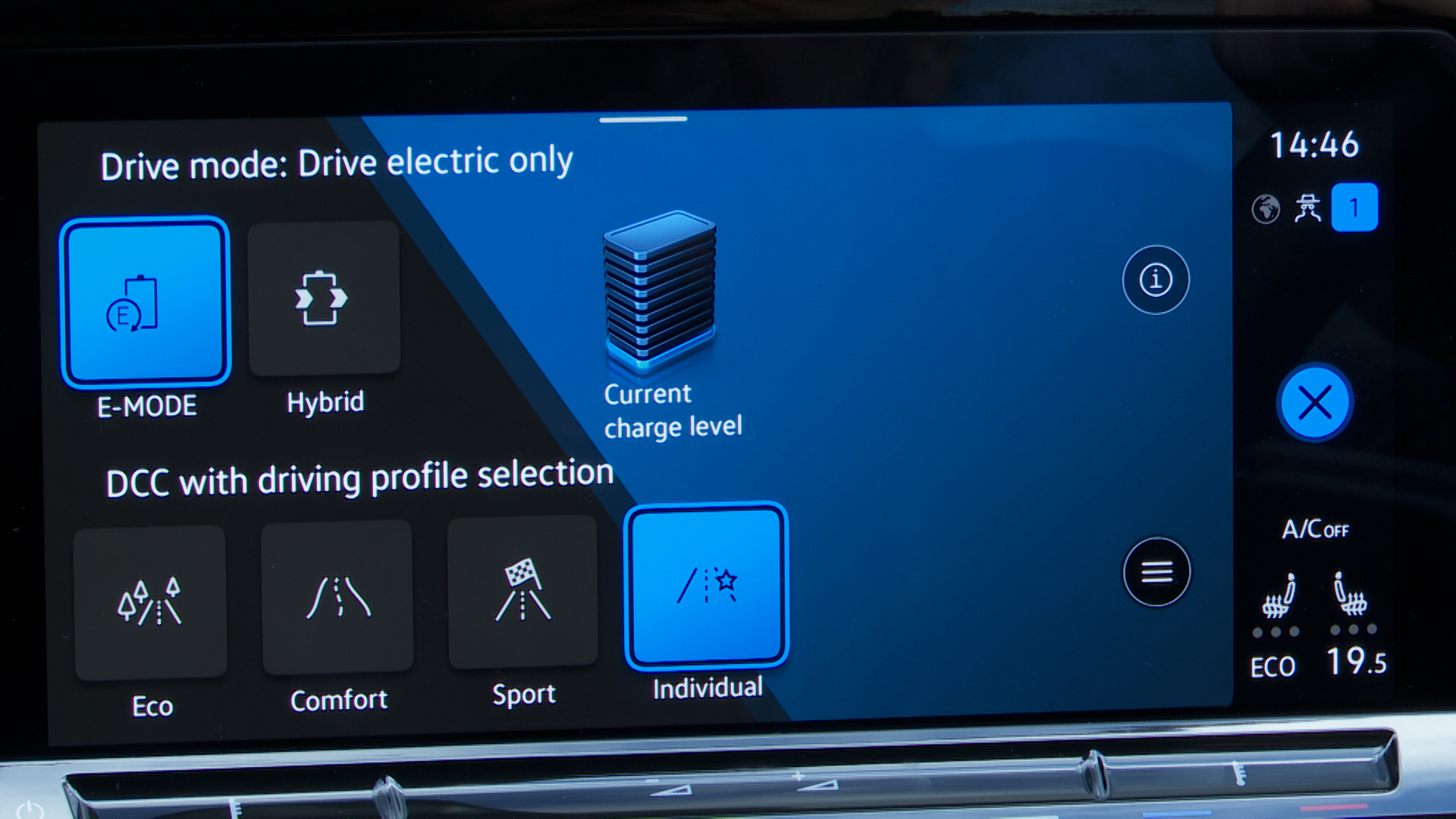 And there's still a 'Battery Charge' option which allows you to charge the battery via the TSI engine - though it's much more efficient to charge the battery from a plug point.