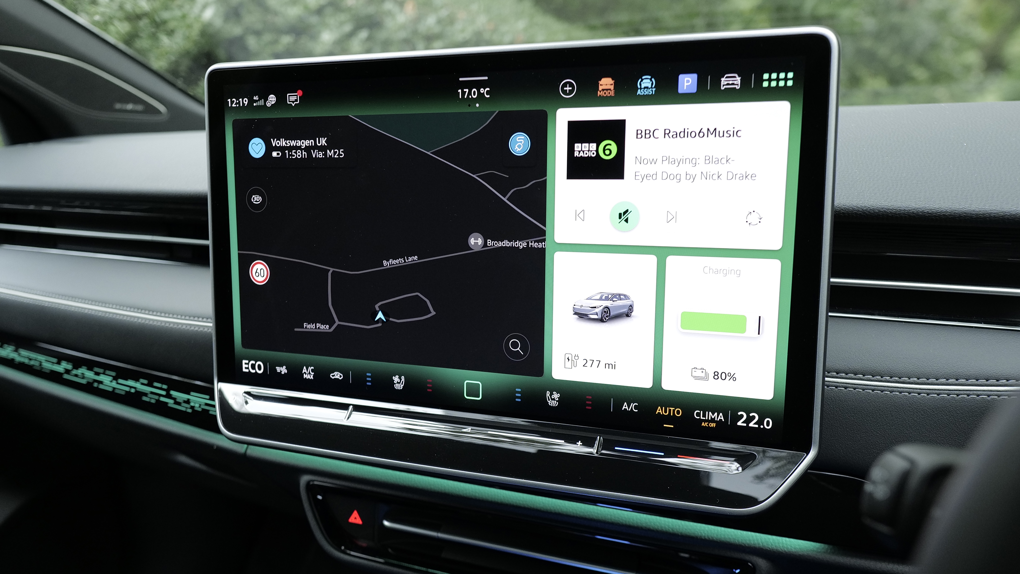 On the move, a standard 'Eco Assistance' feature draws on navigation data and road signs detected by the car's forward-facing camera so that if your ID.7 is approaching a bend or a town boundary, the system can visually indicate that you should lift off the accelerator.
