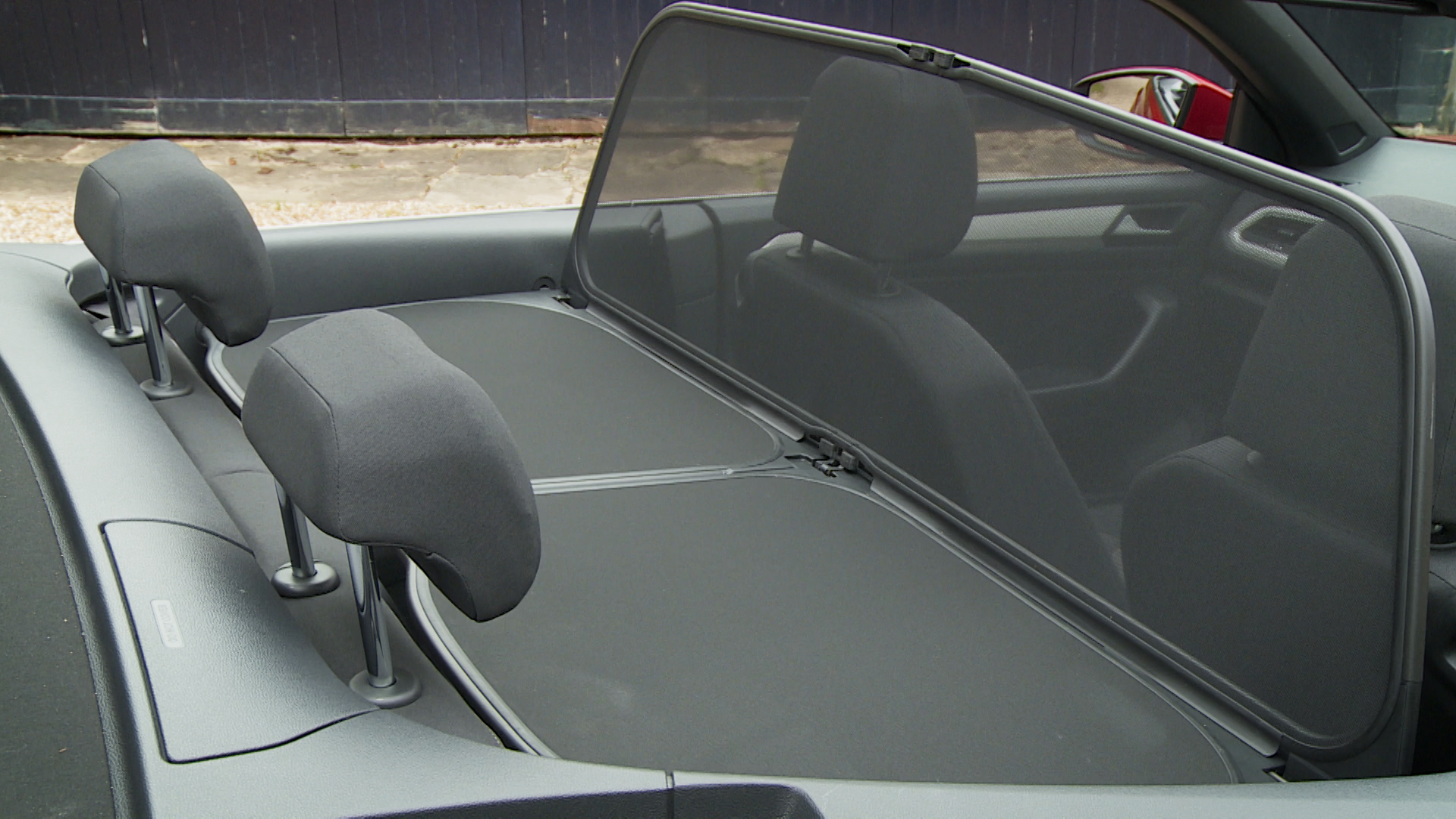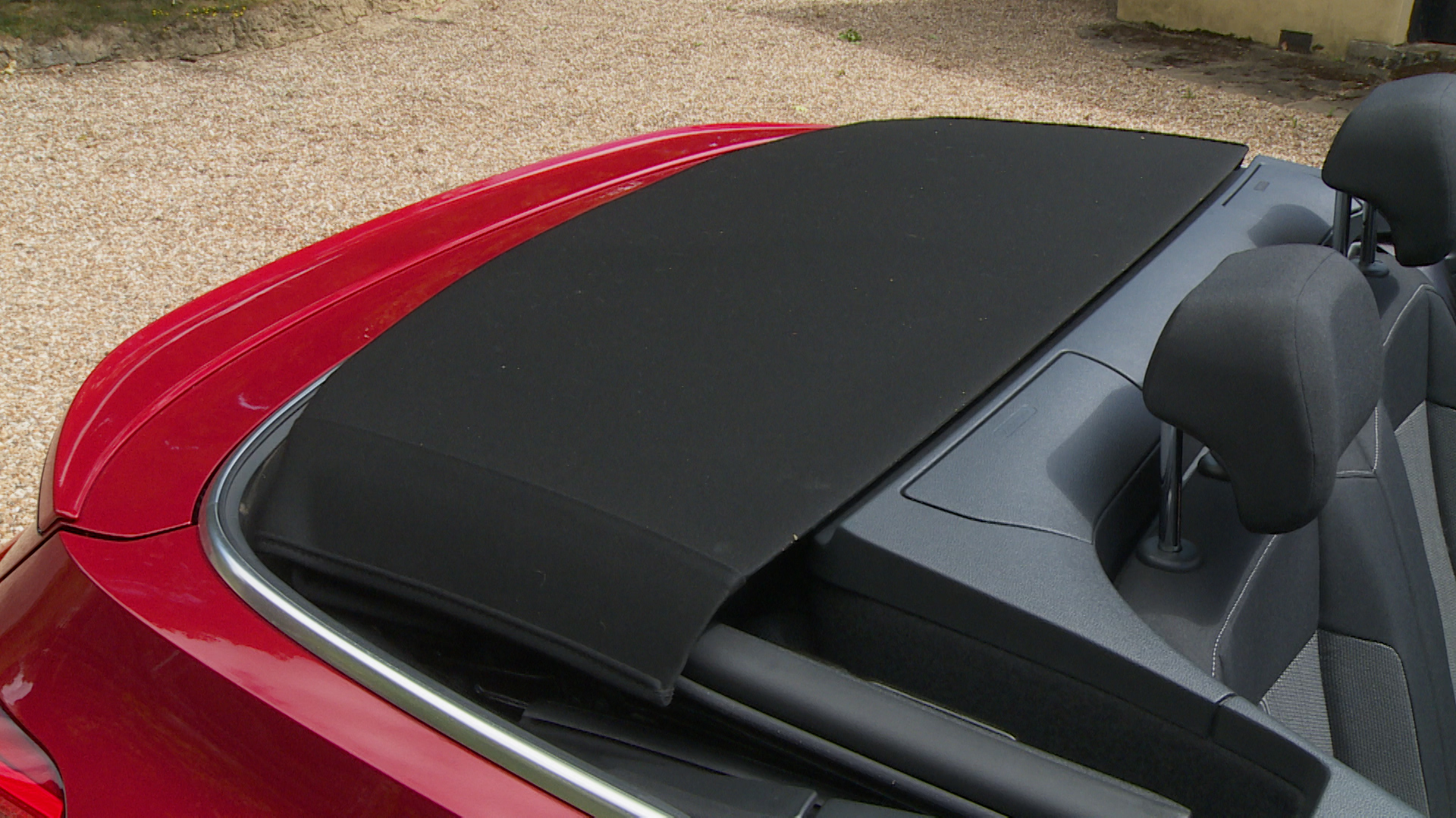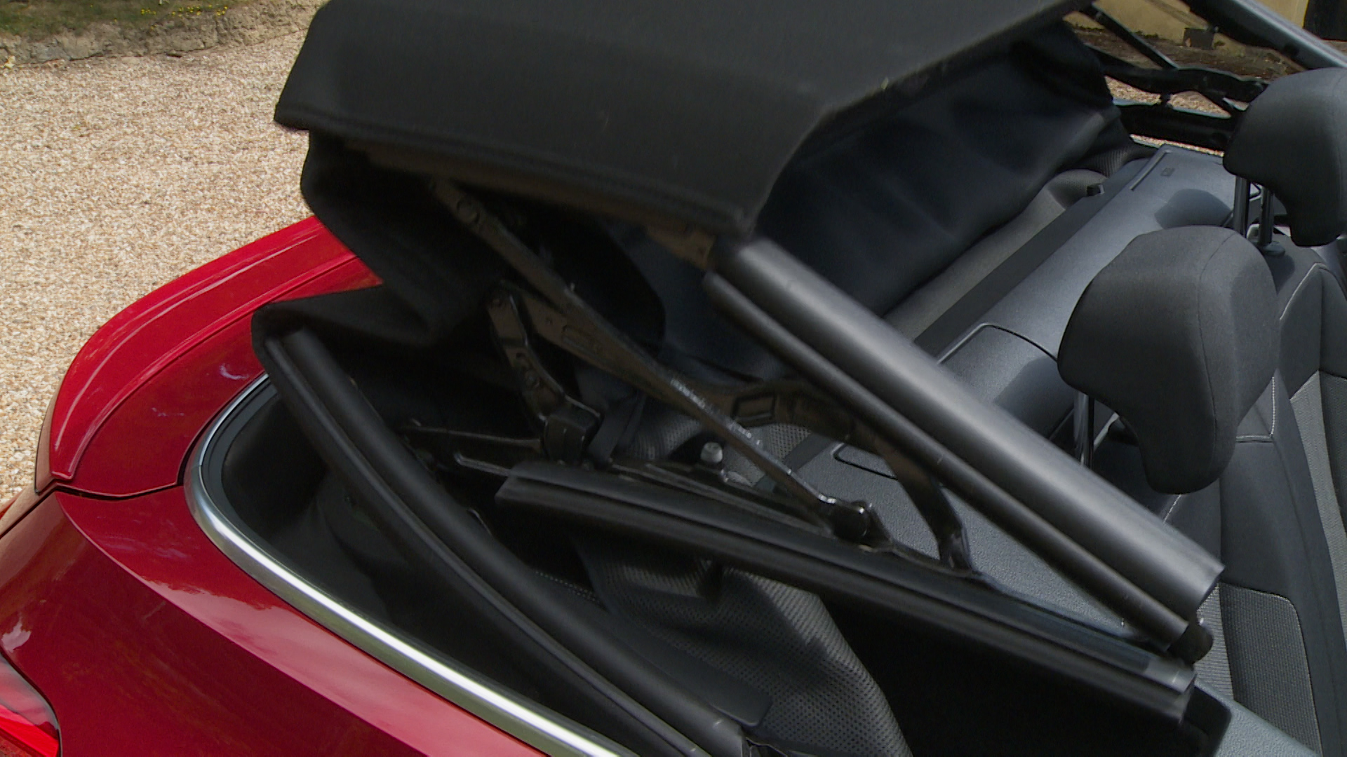 It's a multi-layered fabric affair that lowers at the press of a button in under 12 seconds and stores itself neatly above the luggage compartment behind the rear seats.